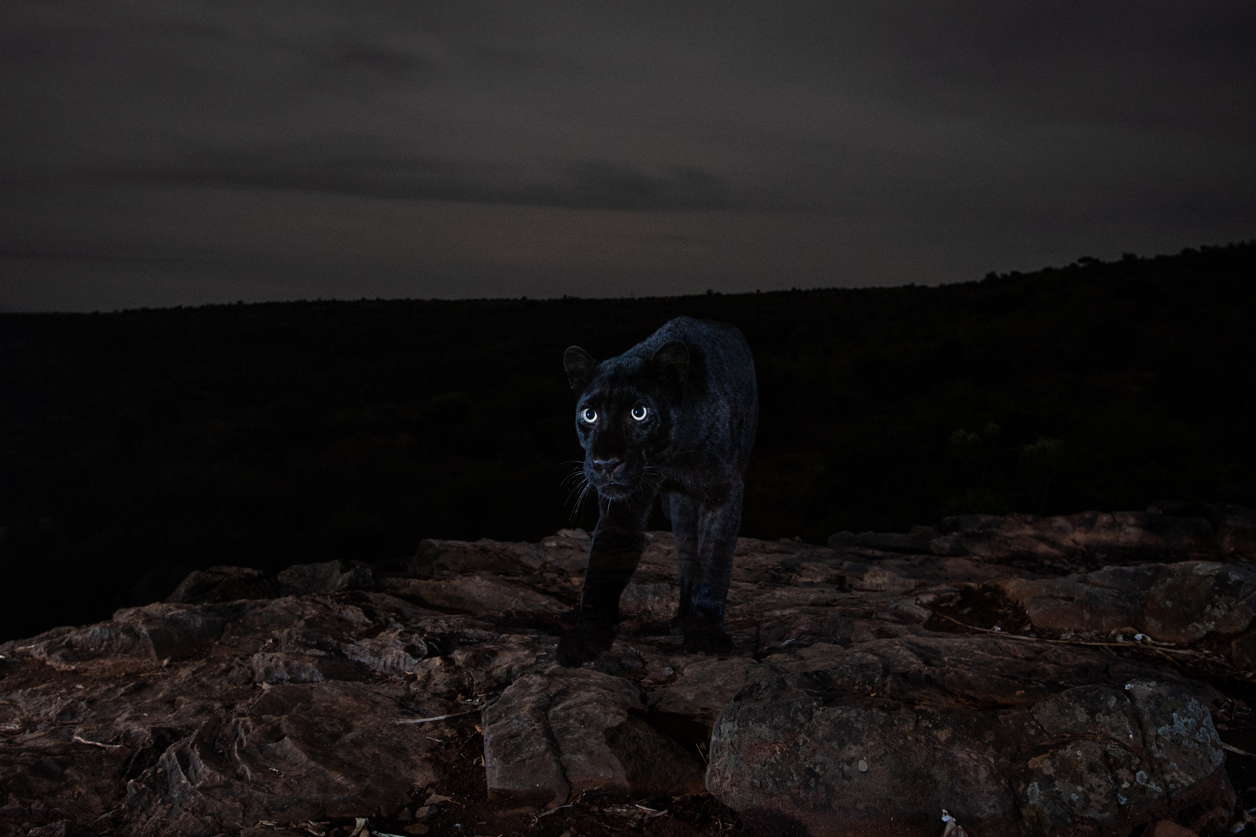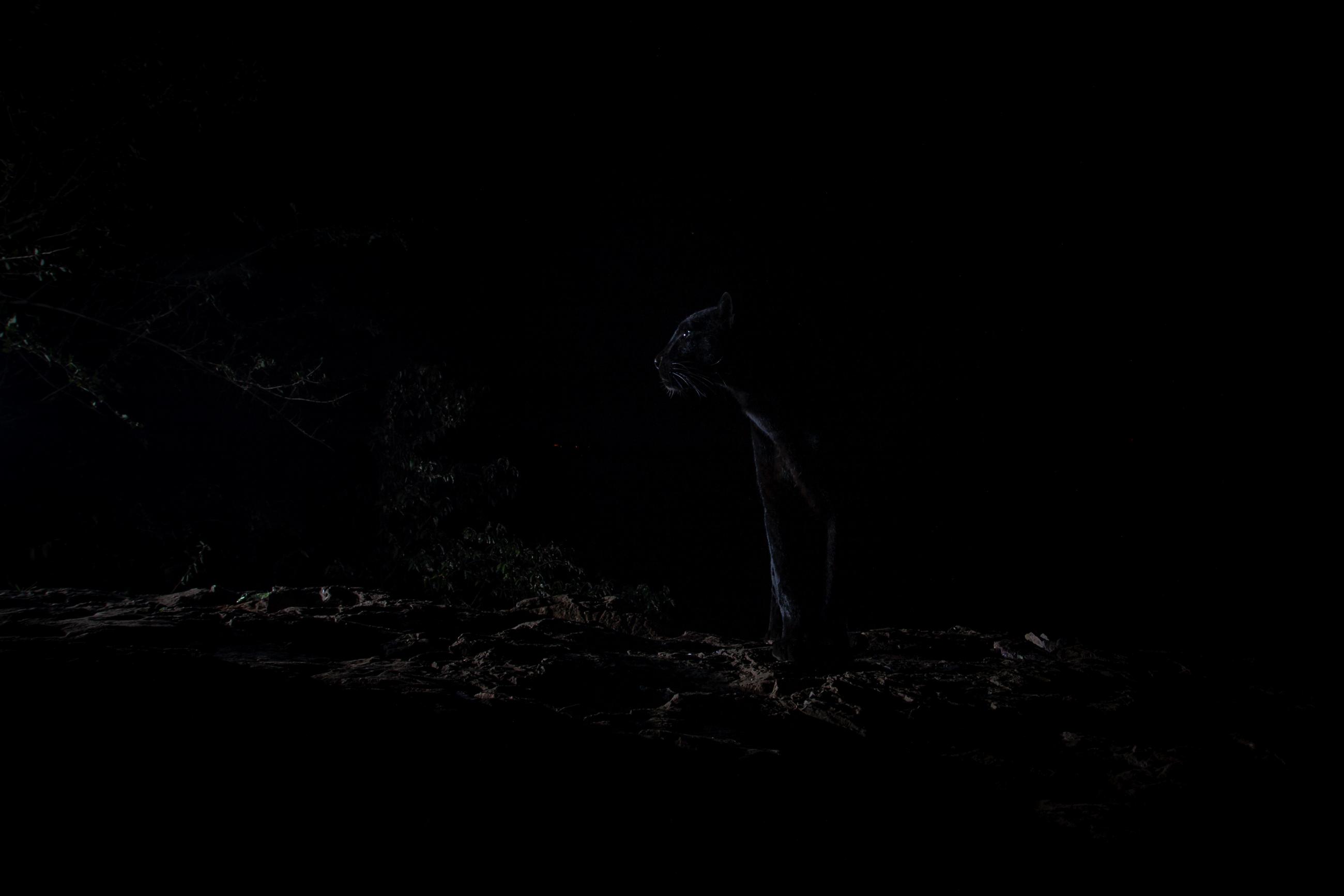 I spent more than a year photographing leopards in Kenya's Laikipia County. All images were taken using a high-quality camera trap system that I developed myself for photographing elusive and nocturnal wildlife. One of the leopards in this area is a very rare melanistic individual – a black panther. Prior to this project, a black leopard had not been scientifically documented in Africa for more than 100 years. The normal ‘spotty’ leopards shown in this series are thought to be the parents of the black leopard. Working exclusively at night allowed me to get creative with lighting. In some images, I used dramatic, studio-like lighting, while in others I balanced my flash with ambient moonlight or even exposed stars in the night sky. Working with such an unusual black animal in the black of night was both a great challenge and a wonderful opportunity to experiment with light.